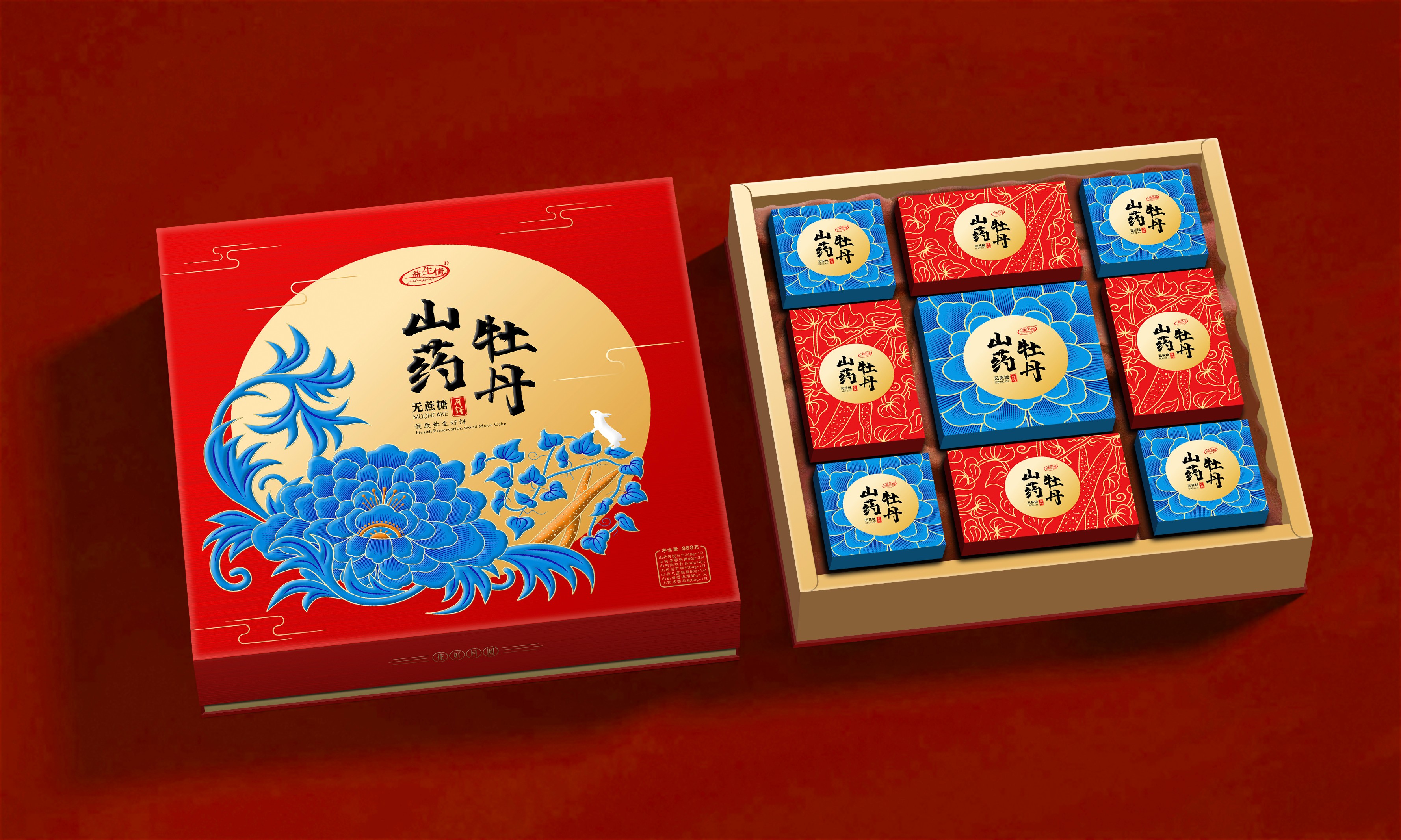 山药牡丹月饼888g无蔗糖礼盒