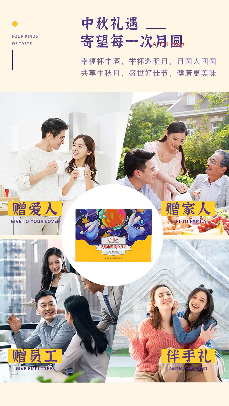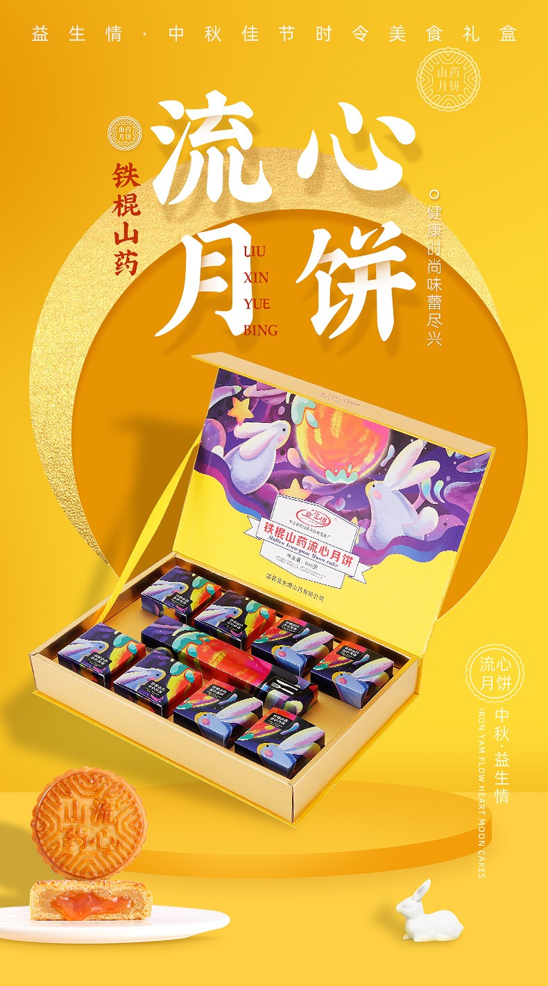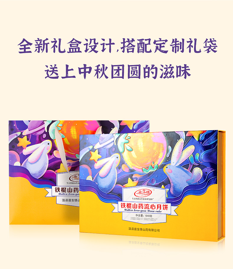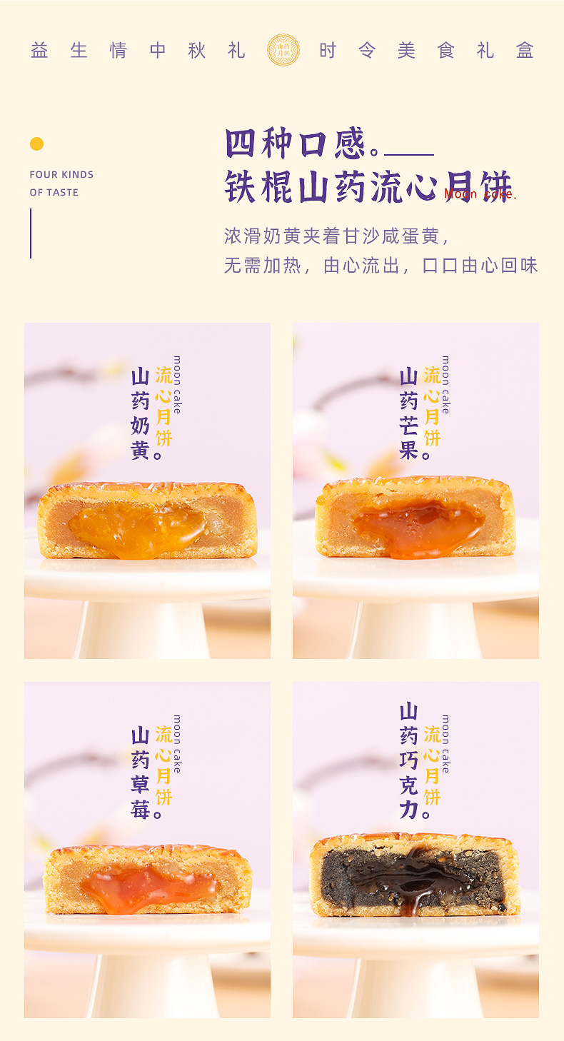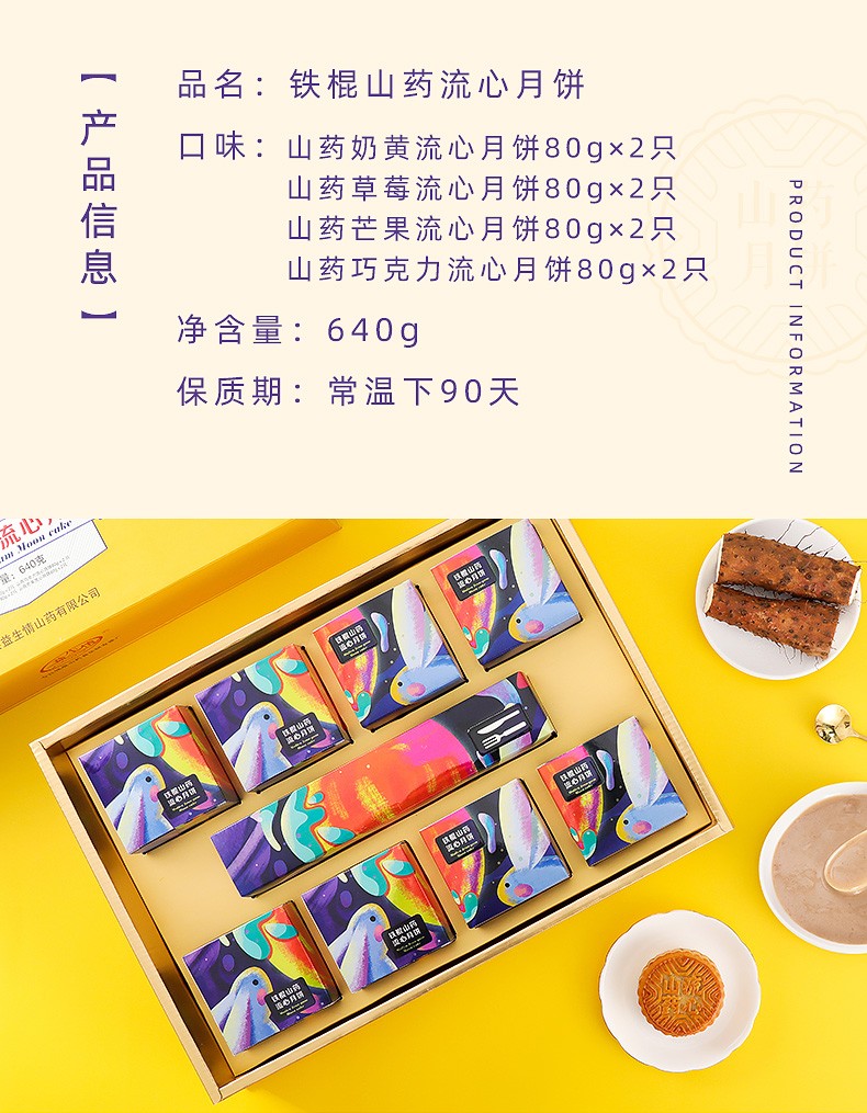 铁棍山药流心月饼640g四味8饼奶黄流心草莓芒果流心巧克力流心